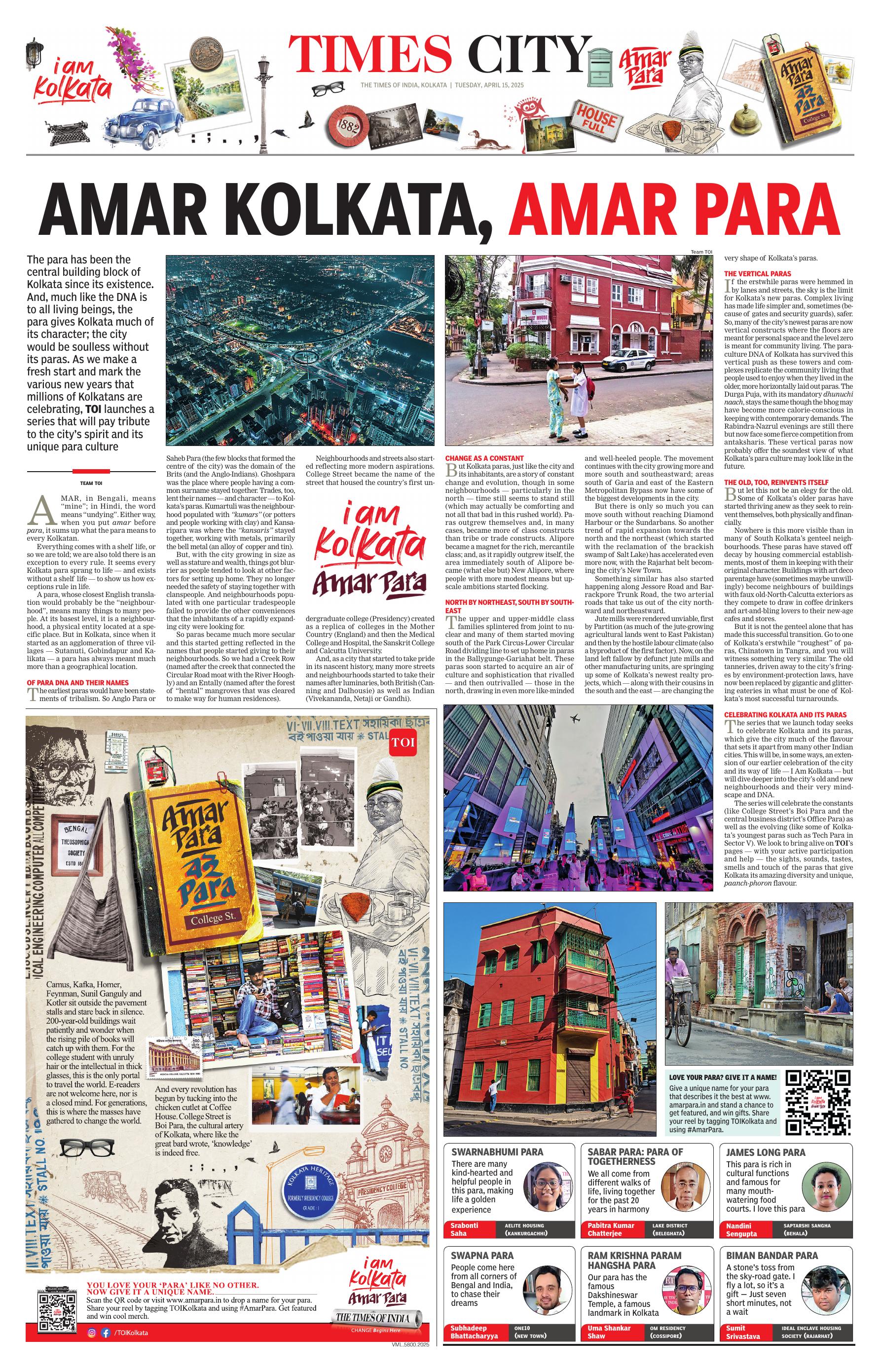 I am Kolkata, Amar Para series by The Times of India celebrated Kolkata and its paras, which give the city much of the flavour that sets it apart from many other Indian cities. Launched on Bengali New Year, 15 April, TOI paid tribute to the city’s spirit and its unique para culture
